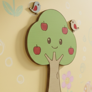 Bu özel tasarım ahşap ağaç duvar dekoru, CNC lazer kesim tekniğiyle hazırlanmış olup, hem dayanıklı hem de çevre dostu bir üründür. Düz katmanlı, yalın ve sevimli tasarımı sayesinde anaokulu ve kreş sınıfları için idealdir. Ağacın üstündeki sevimli kuş figürleri ise çocukların doğa sevgisini pekiştirirken, sınıfa neşeli bir hava katar.