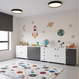 - Kompakt Genişlik: 90 cm genişlik, birden fazla çocuğun eşyalarını depolamak veya farklı kategorideki malzemeleri ayırmak için yeterli alan sunar.