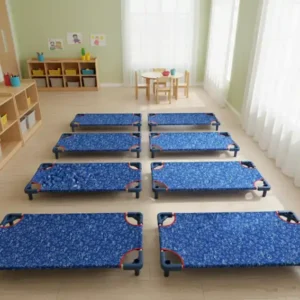 Deniz desenli çocuk uyku kampeti, kreş, anaokulu ve ev ortamlarında çocukların rahat ve hijyenik bir şekilde uyumaları için tasarlanmış pratik bir üründür. İstiflenebilir yapısı sayesinde az yer kaplar ve kolayca saklanabilir. Hafifliği sayesinde taşınması da oldukça kolaydır.