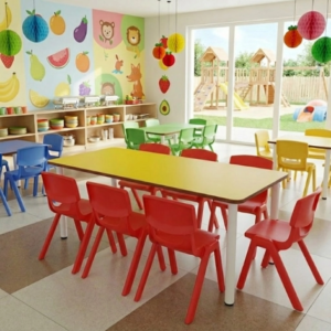 Bu yemek masası, sadece işlevsel olmakla kalmaz, aynı zamanda modern ve sade tasarımıyla da yemekhanenize estetik bir görünüm katar. Farklı renk seçenekleri ile anaokulunuzun dekorasyonuna uyum sağlayacak şekilde tercih edilebilir.