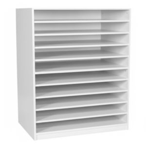 Görseldeki fon karton dolabı, 10 raflı yapısıyla dikkat çekiyor. Bu, farklı boyut ve renklerdeki fon kartonlarını düzenli bir şekilde saklamak için ideal bir çözüm sunuyor. Beyaz rengi, her türlü sınıf dekorasyonuna uyum sağlarken, sade tasarımı da dikkat dağıtmadan işlevselliği ön plana çıkarıyor.