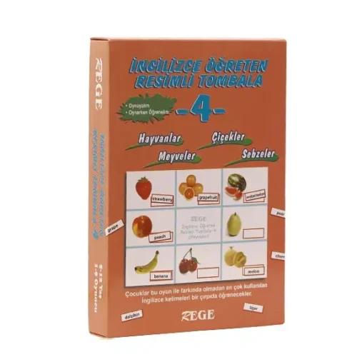 İngilizce Öğreten Resimli Tombala – 4 (Hayvanlar,Meyveler,Sebzeler,Çiçekler)