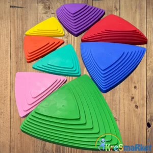 Koordinasyon, denge ve eğlence için ırmak taşlarını sunuyoruz. Yere değmeden bir taştan bir taşa zıplarken taşların renklerine göre farklı oyunlar da türetebilir, pozisyonlarını değiştirerek zorluk seviyesini artırabilirsiniz.