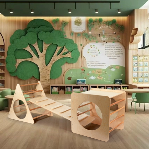 - Çok Yönlü Oyun Alanı: Üçgen ve küp, birleştirilerek macera parkuruna, tek başına ise kale, mağara, tünel veya oyun evine dönüşebilir. (Opsiyonel) Kaydırak/Rampa ile eğlence katlanır.